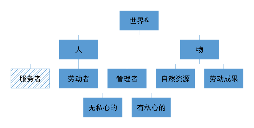 人与人的关系是由人在生产活动中的角色决定的。直接或间接使用自然资源进行生产的是自然资源的使用者(劳动者)。劳动者从自然资源的分配者(管理者,统治者)那里获取自然资源进行生产。其他人员(包括管理者)都是直接或间接为劳动者提供服务的服务者。因为他们不生产劳动产品,所以,他们需要根据自己提供的服务对劳动产品的贡献来获取劳动产品。